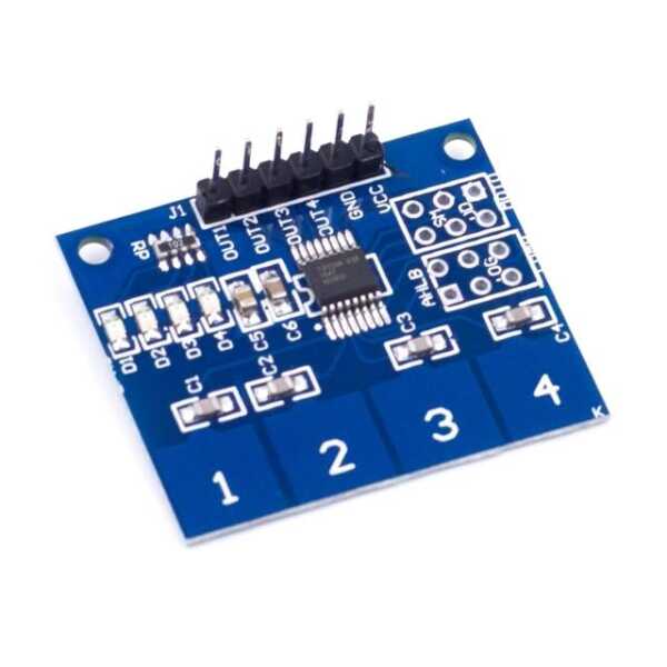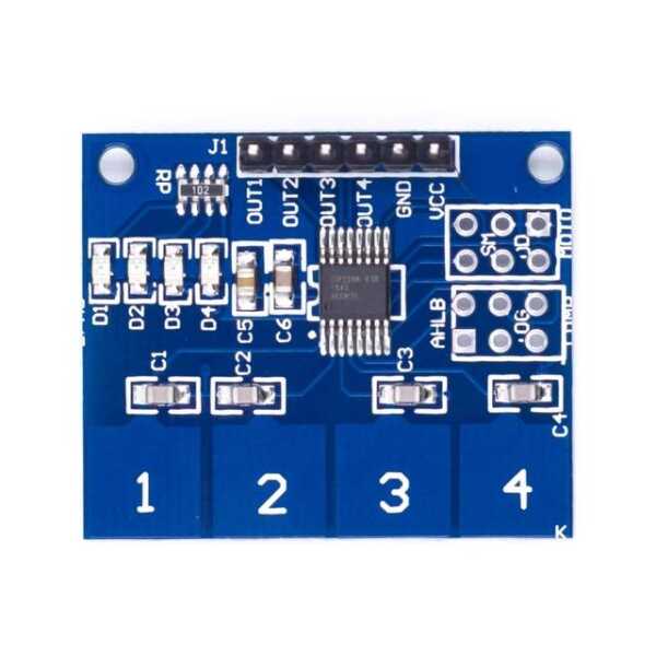 TTP224 4 Yollu Kapasitif Dokunmatik Anahtar Modülü, dört bağımsız kapasitif dokunmatik girişe sahip kompakt, dokunmatik tabanlı bir kontrol modülüdür. Özel elektronik projelerine, ev otomasyon sistemlerine veya güvenilir dokunma algılamanın gerekli olduğu herhangi bir uygulamaya dokunma işlevselliği eklemek için idealdir.