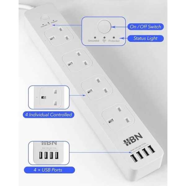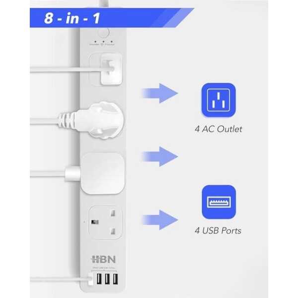 - Bağlantı Noktaları: 4 USB bağlantı noktası, 4 AC çıkışı