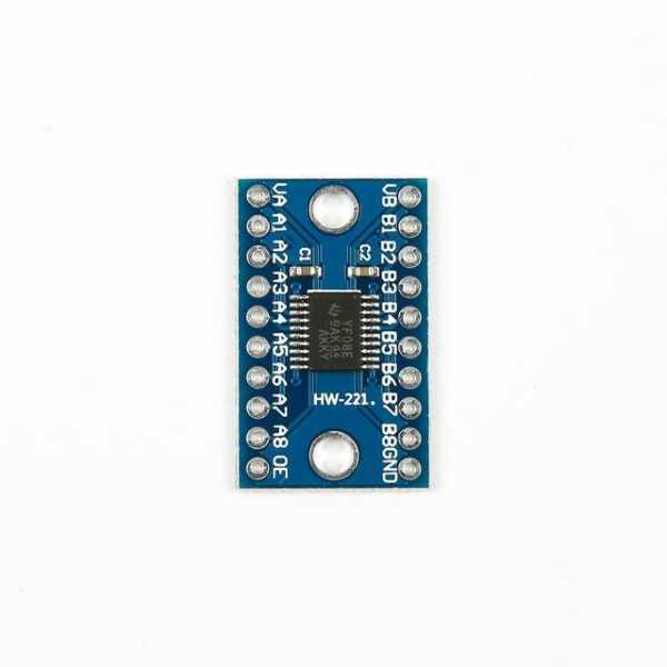 TXS0108E Yüksek Hızlı Tam Çift Yönlü 8 Kanallı Lojik Seviye Dönüştürücü, 3,3V ve 5V gibi farklı voltaj sistemleri arasındaki mantık seviyelerini dönüştürmek için tasarlanmıştır. Çift yönlü iletişim için 8 kanala sahiptir, bu da onu farklı mantık voltaj seviyelerine sahip mikrokontrolörler arasında arayüz oluşturmak için önemli bir modül haline getirir. Bu dönüştürücü, yüksek hızlarda çalışır ve tam çift yönlü iletişimi destekleyerek farklı voltaj standartlarını kullanan cihazlar arasında kesintisiz iletişime olanak tanır. Mikrodenetleyicilerin ve çevre birimlerinin farklı voltajlarda çalıştığı sistemlerde kullanım için idealdir.