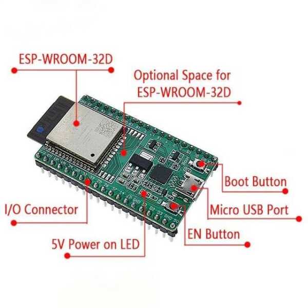 - Yüksek Performanslı Çip: ESP32-WROOM-32D ile donatılmıştır ve karmaşık görevler için güçlü işlem gücü sağlar.