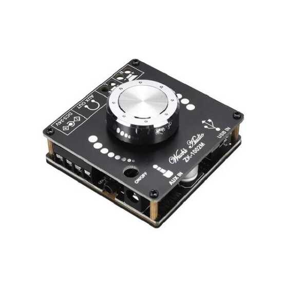 ZK-1002M 100W+100W 2.0 Stereo Bluetooth 5.0 Dijital Amplifikatör Kartı Modülü, daha büyük hoparlörleri hassasiyet ve netlikle çalıştırmak için tasarlanmış yüksek güçlü bir ses çözümüdür. Kanal başına 100 W ile bu amplifikatör, güçlü stereo ses sağlar ve bu da onu yüksek performanslı ev ses sistemleri, genel seslendirme sistemleri ve diğer yüksek güçlü uygulamalar için mükemmel kılar. Bluetooth 5.0 özelliğine sahip olup, Bluetooth özellikli cihazlardan yüksek kaliteli, kablosuz ses akışı sunar. Modül, AUX, RCA ve Bluetooth dahil olmak üzere birden fazla ses girişini destekleyerek kullanıcılara çeşitli cihazları bağlama konusunda esneklik sağlar.