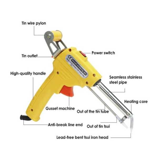60W Eğik Uçlu Sarı Tabanca Havya - Lehim Teli Beslemeli Teknik Özellikleri