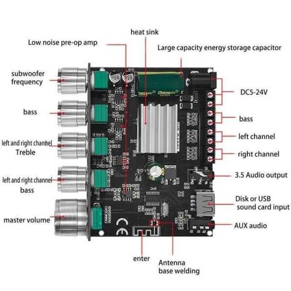 YS-S100L 2x50W + 100W Bluetooth 5.0 2.1 Kanal Amfi Modülü, üstün ses kalitesi ve geniş bağlantı seçenekleri sunan bir ses amplifikatörüdür. Bu modül, ev sinema sistemleri, taşınabilir ses sistemleri ve profesyonel ses kurulumları gibi çok çeşitli uygulamalar için idealdir. Bluetooth 5.0 teknolojisi sayesinde kablosuz bağlantı kolayca sağlanabilir. S100L modeli, 2x50W kanalları ve ek 100W subwoofer çıkışı ile olağanüstü bir ses deneyimi sunarak, kullanıcılarına güçlü ve net bir ses performansı sağlamaktadır.