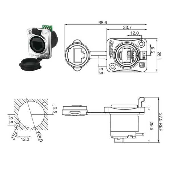 YT-RJ45-JSX-17-001 Su Geçirmez Ethernet Konnektörü - Dişi Teknik Özellikleri