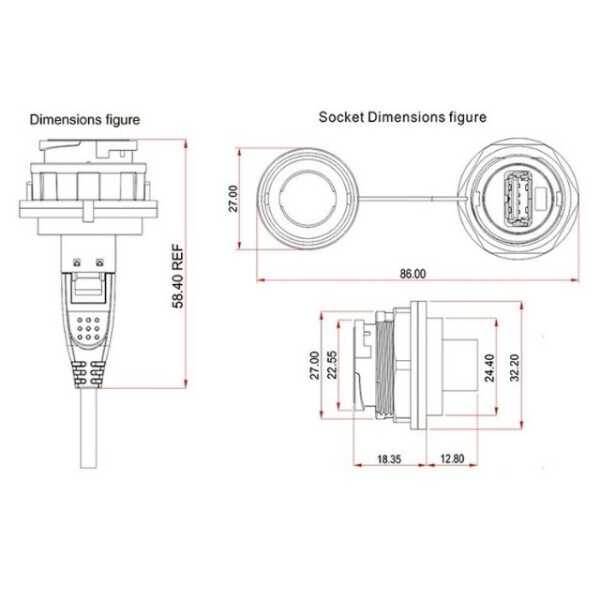 YU-USB2-FS-MP-1M-001A Su Geçirmez Dişi-Erkek USB Konnektör - 1M Kablo Teknik Özellikleri