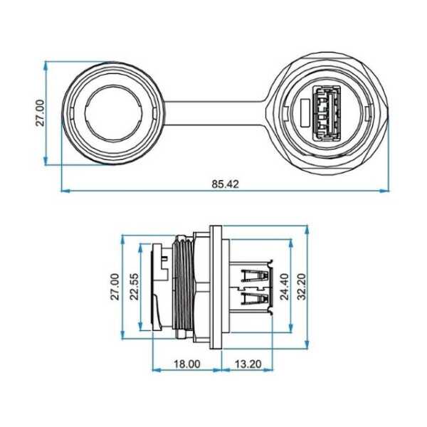 YU-USB2-JSX-01-001 Su Geçirmez USB Konnektör - Dişi Teknik Özellikleri